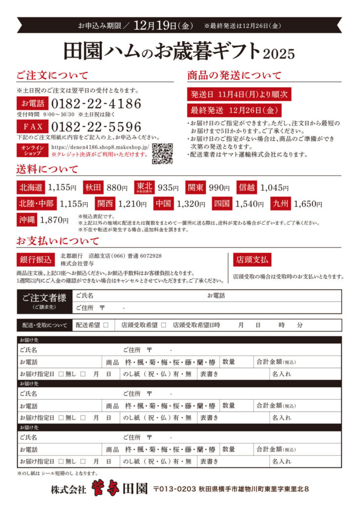 田園ハムのお歳暮ギフトのご案内です。
